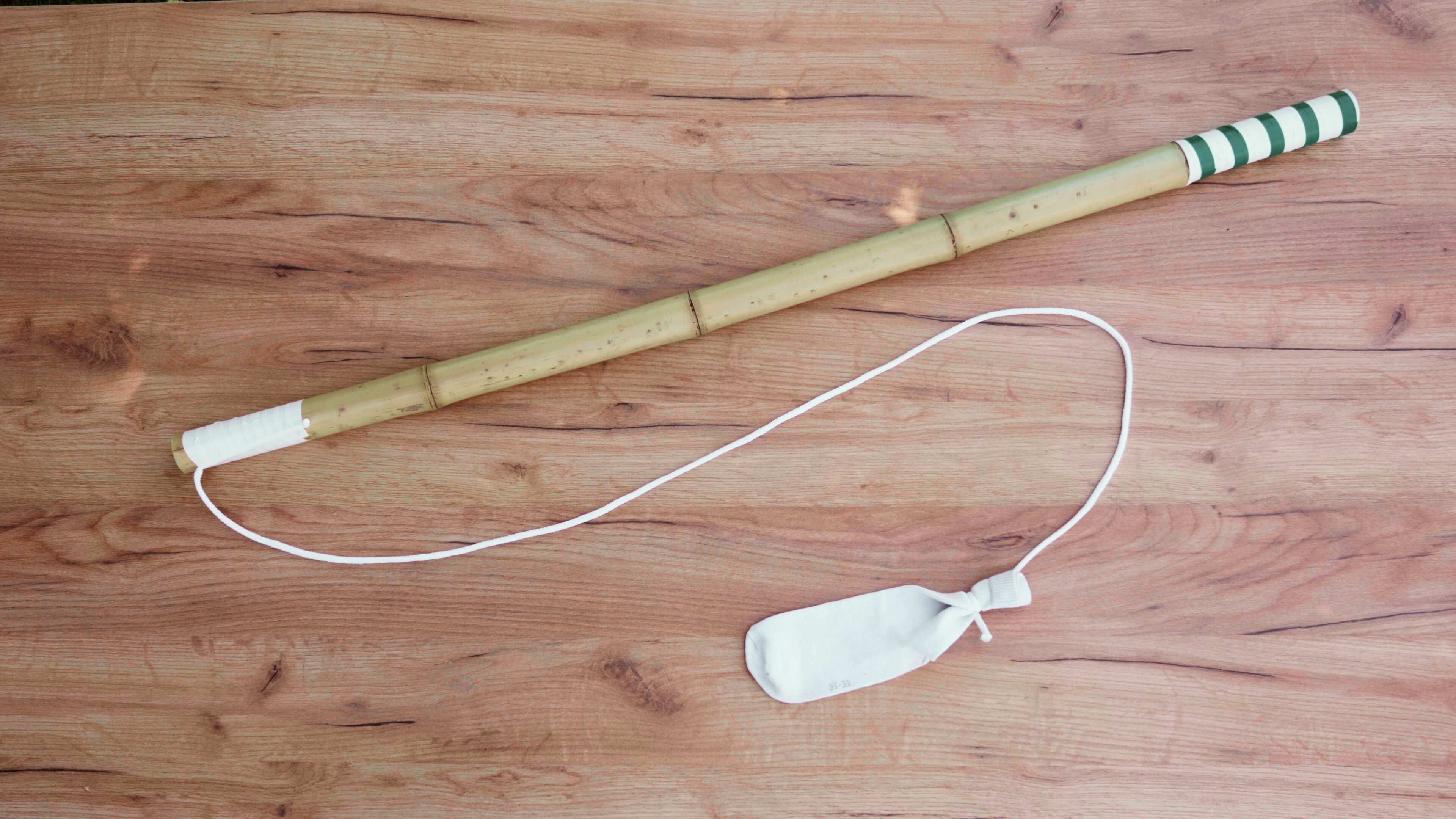 Messe als erstes das Bambusrohr auf 110 cm ab und säge es entsprechend zu.